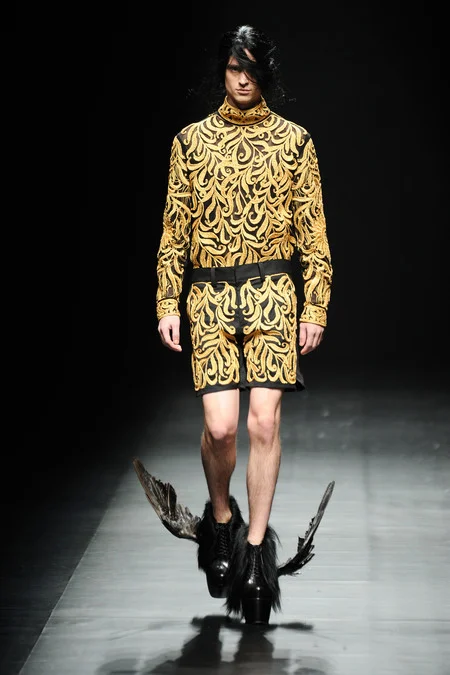 Masanori took his theme from the mythical bird Fenghuang, from which the idea of the Phoenix was born. Masaya Kushino took the bird theme literally, and added feathers to his footwear. The mixture of fur, leather and the lightness of the feathers made me fall head over heels with his shoes.